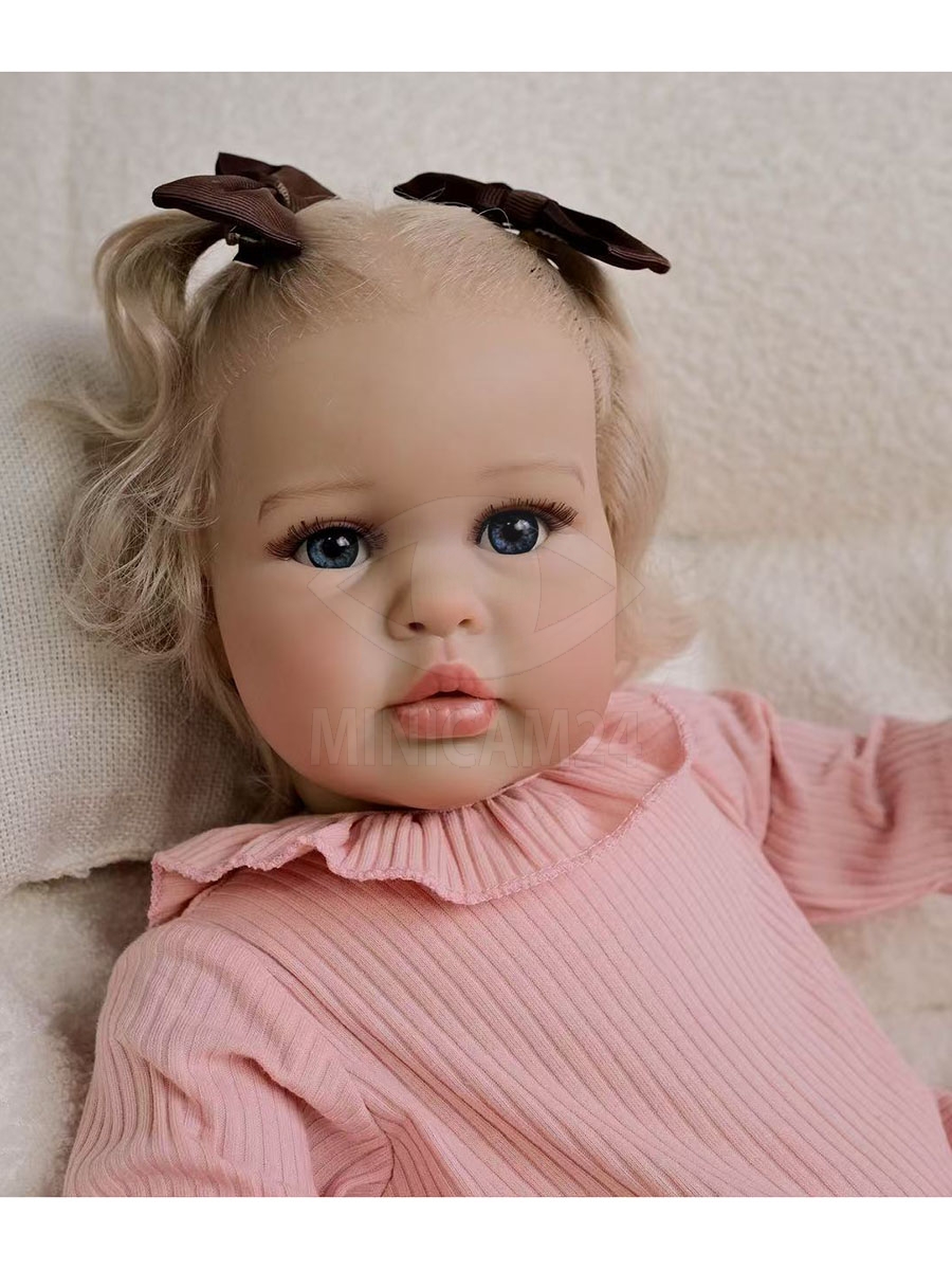 Особое внимание уделено деталям: на теле заметны вены, капилляры, мраморность кожи, покраснения, складочки и аккуратно прорисованные ноготки. Пальчики у куклы гнутся, что позволяет менять положение рук и ног для создания более естественных поз. Такой уровень проработки делает куклу выразительной и живой.
